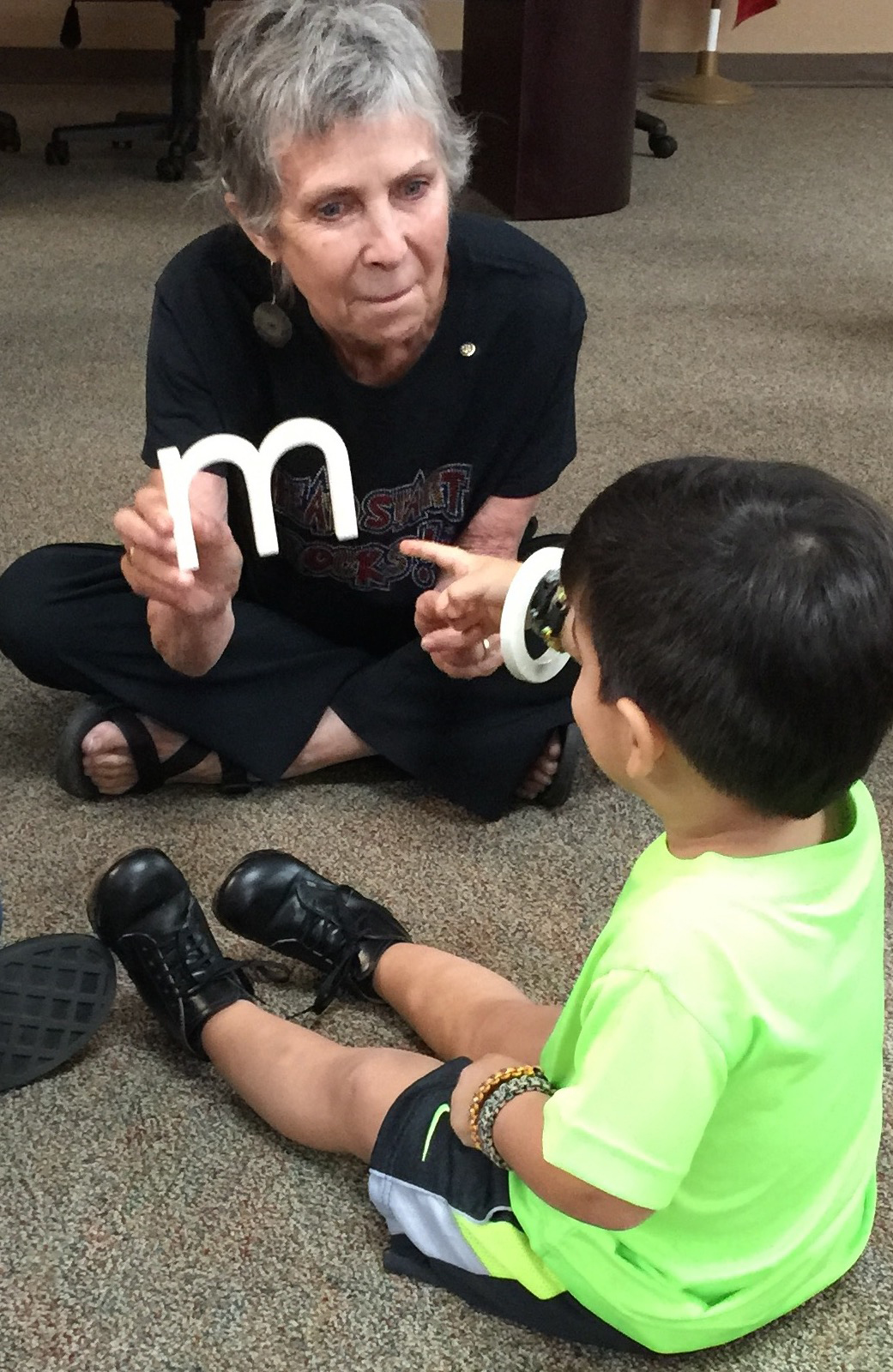 This early literacy project is GG1523886 sponsored by host RC Rio Piedras (RD7000) and partner RC Peachtree City (RD6900). The Rotary grant funds the Souns materials only. Souns advocates and Rotarians volunteer to do the teacher training.  In the photo below, RC Peachtree City Rotarian, Brenda Erickson, demonstrates the joy and ease of the Souns program. Magically, round tables and a few minutes with a real child make a great learning experience for Head Start teachers, assistants, and Rotarians!