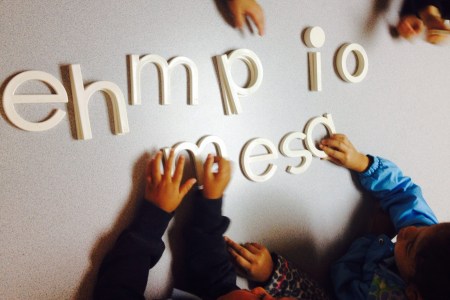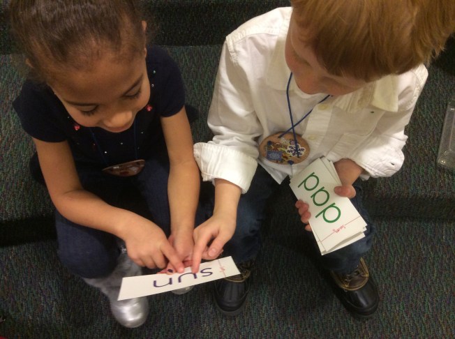 The visit to GET SET confirmed further results of Souns. These two preschoolers are exploring their newly discovered ability to sound out words.