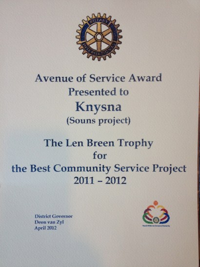 KNYSNA’S SOUNS PROJECT By Lesley Satchel, Past President, Knysna