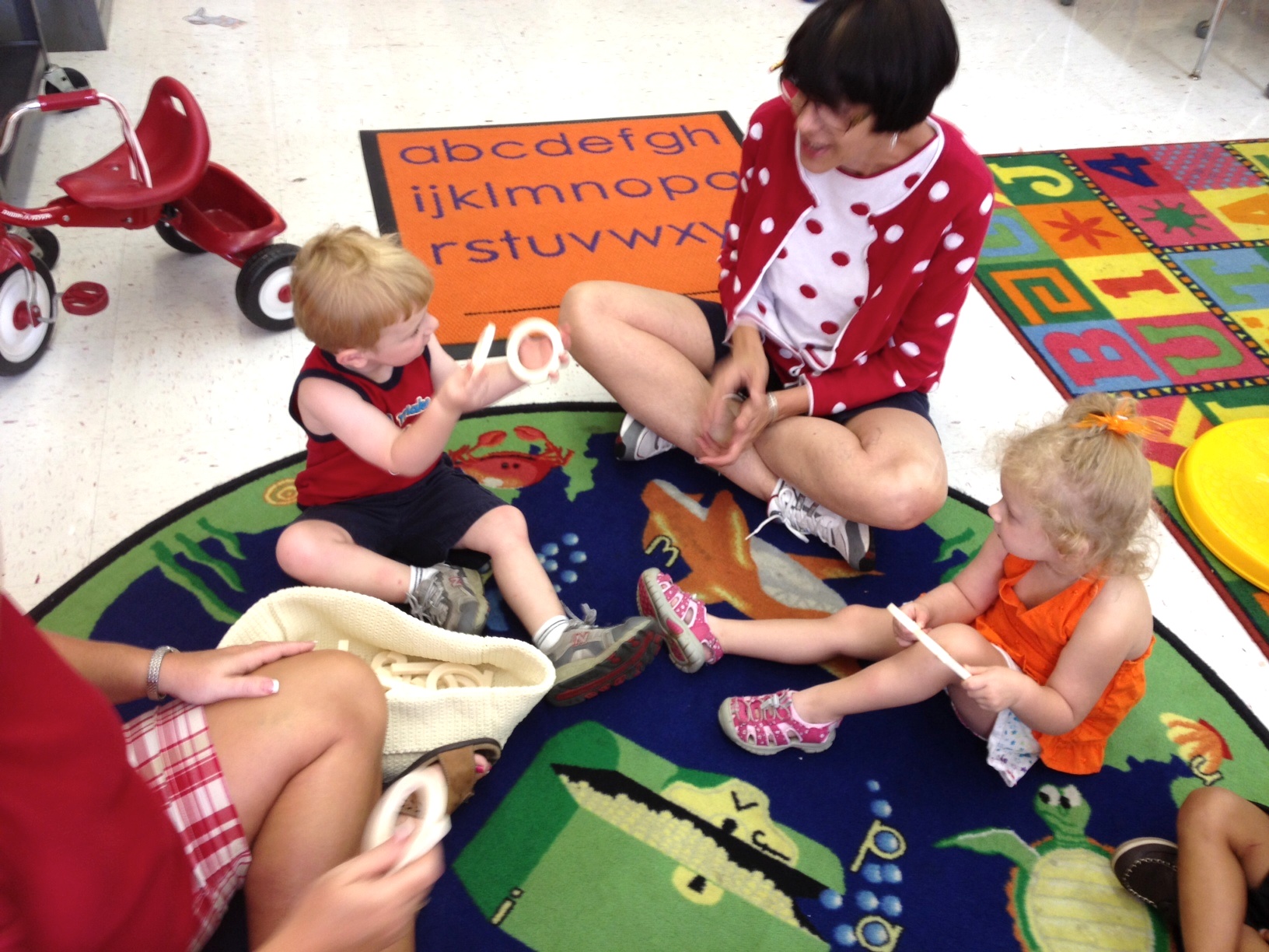 “Let the sounds tell you!” says the teacher as the child listens to the sound of each letter to find the word hiding there. That little analytical mind is at work and at play all at the same time! Learning is happening.