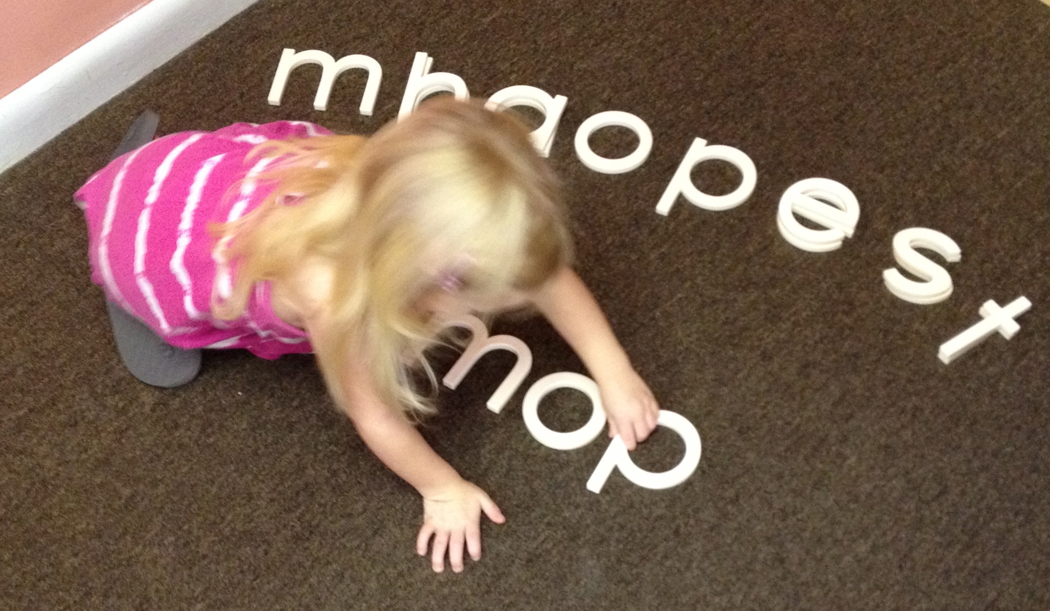 The teachers in these preschool classrooms have done excellent work helping their learners know letter sounds. The next step was right there, waiting within the child. How fortunate these children are to have such a supportive community of educators wrapped around them.